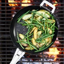 GreenPan™, the pioneering company behind PFOA-free nonstick ceramic cookware, elevates the art of healthy cooking outdoors with a collection specially designed for gas grill cooking. Each piece is expertly crafted of hard-anodized aluminium with stainless steel handles, and the interior features a Diamond Premiere nonstick ceramic finish, infused with layers of diamonds for unparalleled heat transfer and durability that stands up to metal utensils. The deep skillet’s wide, rounded base and tight-fitting lid make it especially versatile. Use it to sauté vegetables, braise meats, simmer sauces and prepare family-size one-pan meals.